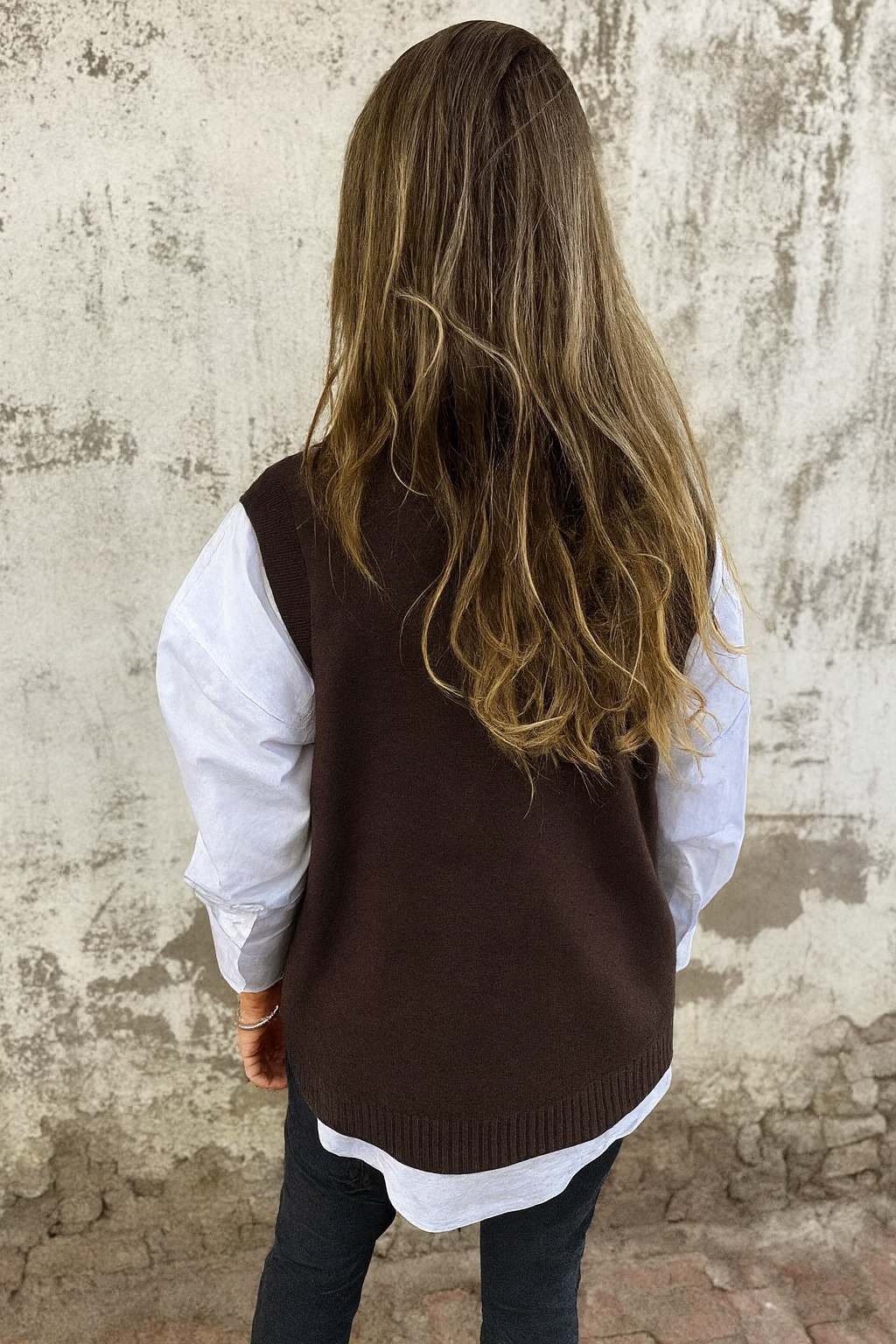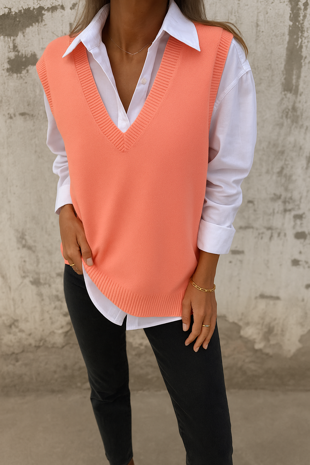 Suave, elegante y versátil, Sara es un chaleco imprescindible en cualquier armario. Ideal para tus conjuntos de otoño e invierno, combina un diseño clásico con una practicidad moderna. Su cuello en V favorecedor y la textura de punto refinada aportan calidez y estilo a cada look.